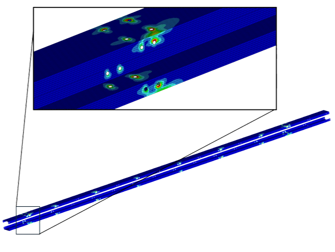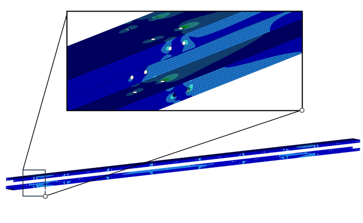 Esse tipo de problema exige modelos numéricos avançados, capazes de representar com fidelidade o comportamento ortotrópico do material, algo que a Virtos domina por meio de um robusto acervo de testes físicos e computacionais, que hoje sustentam seu processo de dimensionamento para aplicações complexas. Abaixo podemos ver os índices de tensões do perfil, esta projeção foi essencial para o andamento do projeto e realizada através do Método dos Elementos Finitos.